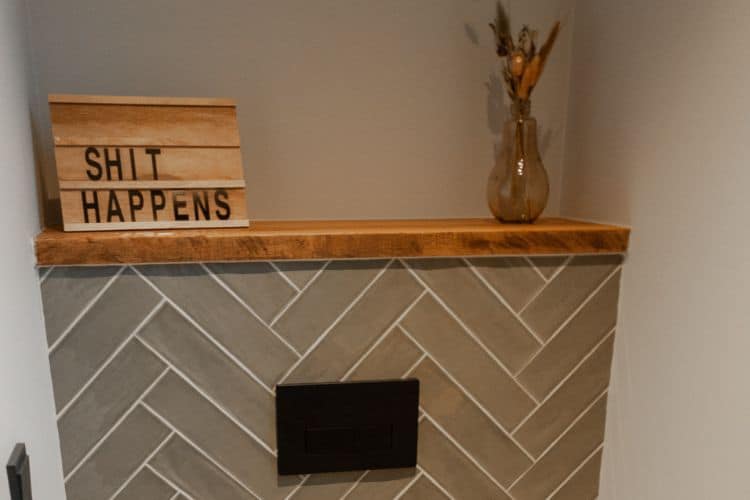 Om het toilet reservoir netjes af te werken is er in deze ruimte gekozen voor een toilet plank. Zo kun je op deze plek ook nog enkele accessoires kwijt.