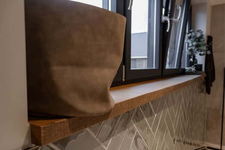 Om de ruimte helemaal af te maken is ook de vensterbank in de ruimte gemaakt van dezelfde houtsoort.